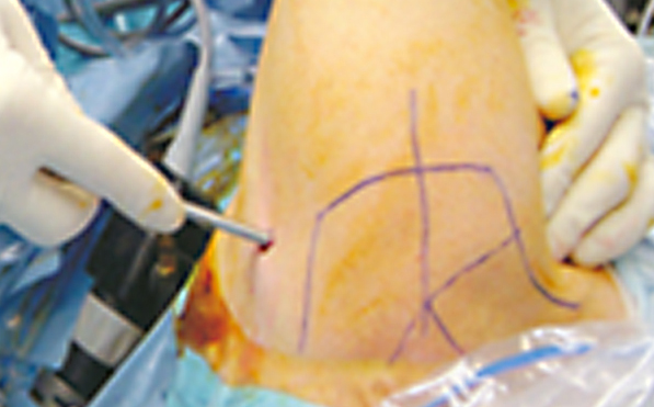 Iz foto dokumentacije dr Medenice: Uvodjenje metalnog vodiča u zglob ramena na mestu tzv. sigurne zone