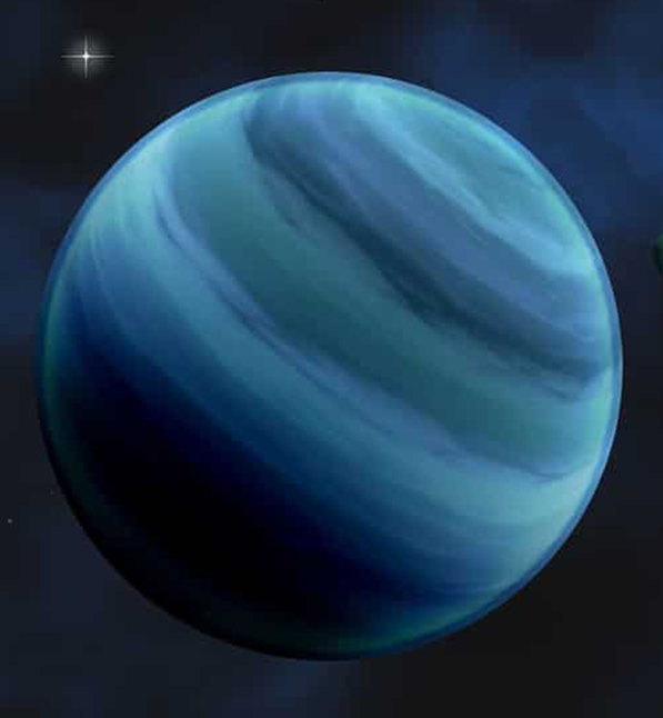 b ima skoro duplo veći prečnik od Zemlje i četiri puta veću masu. Kruži oko male i hladne crvene