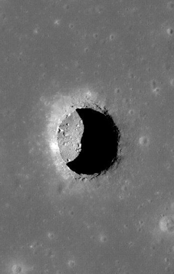 Međunarodni tim naučnika, proučavajući stare podatke NASA-inog Lunarnog izviđačkog orbitera (eng. Lunar Reconnaissance Orbiter, LRO), pronašao je dokaze o postojanju pećine ispod lunarne površine u Moru tišine, nedaleko od mesta sletanja „apolla 11“. Ovoj pećini može se pristupiti kroz 40 m širok, na desetine metara dubok otvor, odnosno tzv. jamu. S obzirom na utvrđeno postojanje većeg broja jama sličnih ovoj, širom lunarne površine, može se pretpostaviti nalaženje drugih pećina oko njih. Potvrda postojanja lunarnih pećina od velikog je značaja i za planove gradnje baza i trajnih naseobina na Mesecu, s obzirom na dobru termalnu i radijacionu zaštitu koje pećine pružaju.