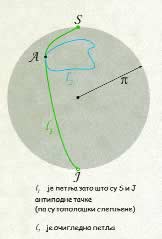 Korisni primeri petlji iz ovih dveju klasa predstavljaju sledeće dve petlje: prva se može konstruisati kao pravolinijska putanja koja polazi sa “severnog” pola (iz tačke S) i kroz centar pi-lopte završava na “južnom” polu (u tački J). Ovo jeste petlja jer su tačke S i J antipodne, odnosno to je jedna te ista tačka. Dobijena petlja pripada istoj klasi kojoj pripada i petlja l1 sa slike. Petlje iz ove klase ne mogu se stisnuti nekakvom topološkom deformacijom u jednu tačku. Ovakva petlja zapravo reprezentuje rotacije oko z-ose za sve uglove od 0 do 2pi. Klasi l2 bi pripadala petlja koja polazi iz tačke S i kroz centar stiže u tačku J, da bi se ponovo kroz centar vratila u tačku S. Ovakva petlja se može stisnuti u jednu tačku. Ovoj petlji odgovaraju rotacije oko z-ose za uglove od 0 do 4pi.