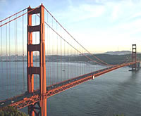 Ovaj most u San Francisku projektovan je 1918. a izgrađen 1937. godine. Sa prilaznicama dug je 2,7 km i pruža se nad vodom na visini od 67 m. Dva noseća tornja uzdižu se do 227 m, sa dva kabla preseka 0,91 m, o kojima visi konstrukcija mosta.