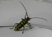 Pri izlasku iz šume, na obraz mi je sleteo ovaj tvrdokrilac sa šarama na leđima poput slagalice. Ne znajući ni danas kao ni pre nekoliko meseci ko je on, pažljivo sam ga izvukao iz moje brade gde je skliznuo i odneo do moje bubačuvarke (čaše za piće) i, kao što obično radim sa insektima, ne želeći da ih ubijem ili povredim, u čaši sam ga fotografisao a onda pustio na slobodu. Nadam se da još leti svetom. |