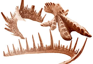 Konodonti su najbrojniji fosili u celom paleozoiku. To su fosfatni oblici slična ždrelnim zubima riba. Zato su paleontolozi pretpostavili da su životinjice koje su ih upotrebljavale imale oblik sličan sitnim jeguljama. U isto vreme postojali su veoma krupni ostrakodi veličine do blizu 10 santimetara (Leperdicia).