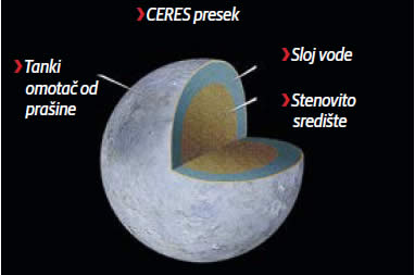 Ceres je 1801. godine otkrio italijanski astronom Đuzepe Pjaci, a nazvan je po rimskoj boginji zemljoradnje i plodnosti. To malo svemirsko telo, prečnika oko 1.000 km, koje za četiri i po godine obiđe oko Sunca, prvobitno je smatrano masivnim asteroidom, ali je kasnije ustanovljeno da je sfernog oblika i da ima silikatno jezgro sa ledenim omotačem. Međunarodna astronomska unija zvanično je uvrstila Ceres 2008. u novoustanovljenu kategoriju „patuljastih planeta".